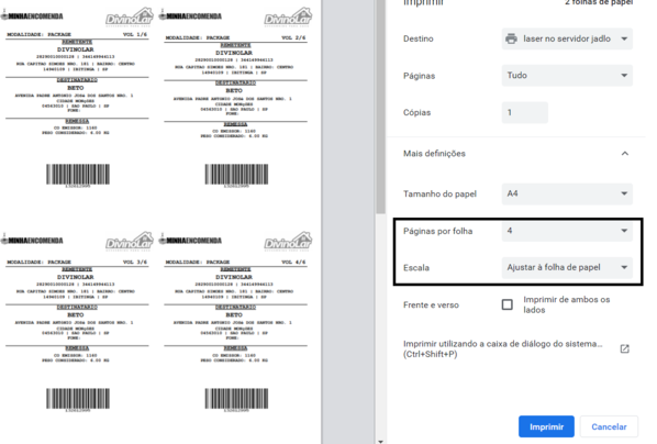 Dica para economisar papel: alterar os parametros [Páginas por folha] e [Escala] conforme abaixo.